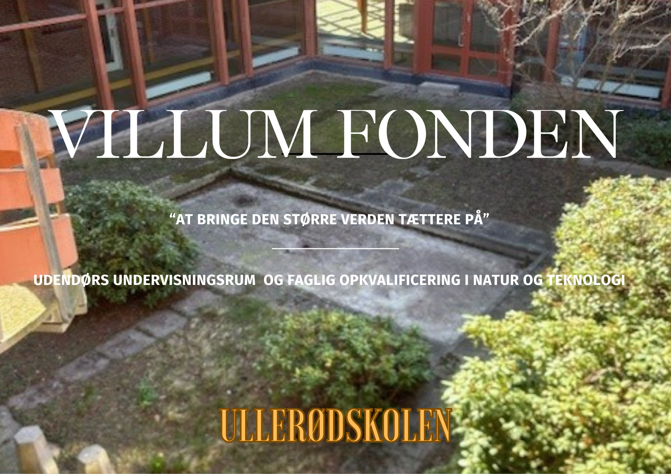 Ullerødskolen har fået en generøs bevilling fra Villum Fonden til udvikling af dele af udendørsarealerne til udendørs læringsrum til gavn for vores elever.